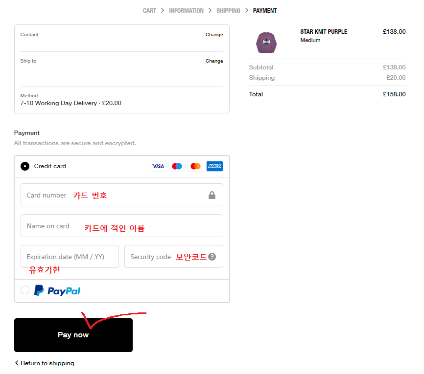 입력 후 Pay now를 눌러 완료해주면 결제가 완료!