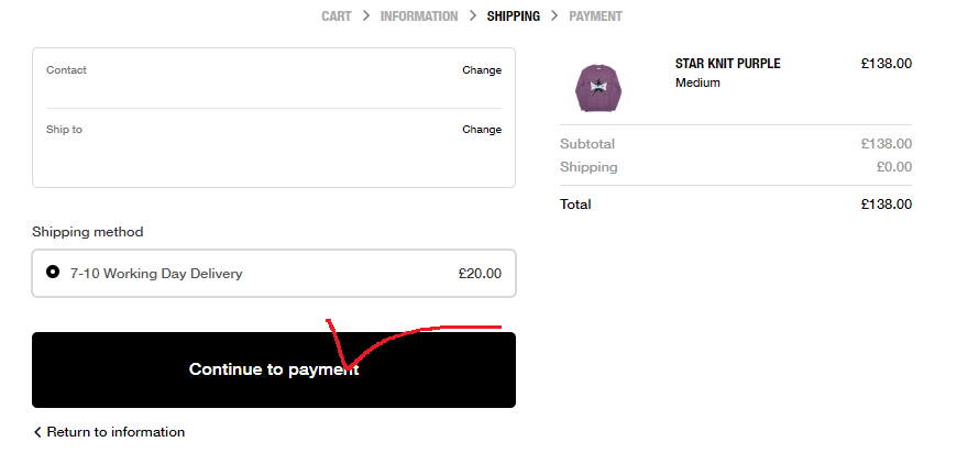 작성을 완료하여 Continue to shipping을 누르게 되면 배송 가격이 측정되어 총 가격을 보여 줍니다.