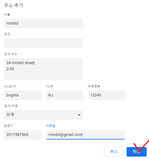 주소를 작성하고 저장을 하였더니 새롭게 생긴 주소를 볼 수 있습니다.