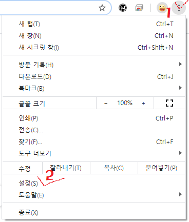설정창 구글 크론 오른쪽 위에 보시면 점이 세개로 되어있는 버튼이 있습니다.