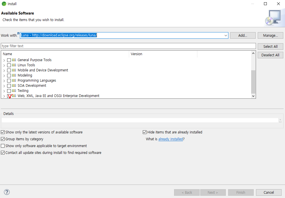 Work with에 Luna - http://download.eclipse.org/releases/luna/ 작성 혹은