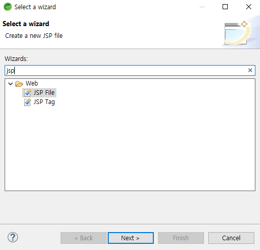 만약 파일 -> 마우스 오른쪽 버튼 -> New -> Other -> Select a wizard네 Web폴더와 jsp파일이 없다면??